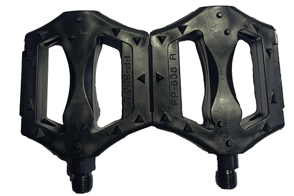 Описание: Педаль пластиковая "МТВ", черная, резьба 9/16", модель 836 с шариковым подшипником, большая платформа, с катафотами, высокое качество